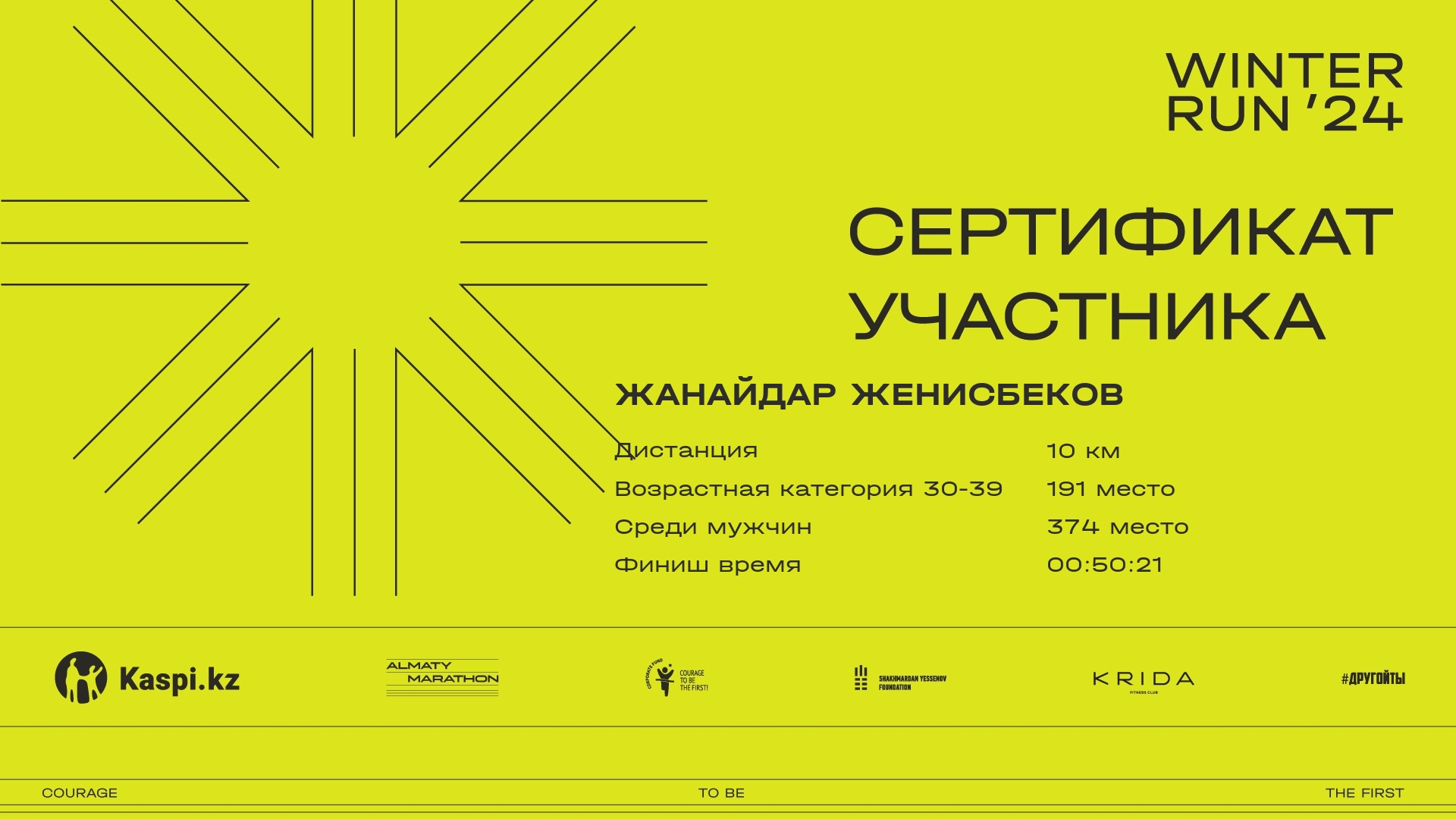 | 446 | Daniyar Aktayev | ![]() | Алматы | 901 | 00:07:05 | 00:25:00 | 00:42:22 | 00:50:42 | 00:50:34 | Скачать |