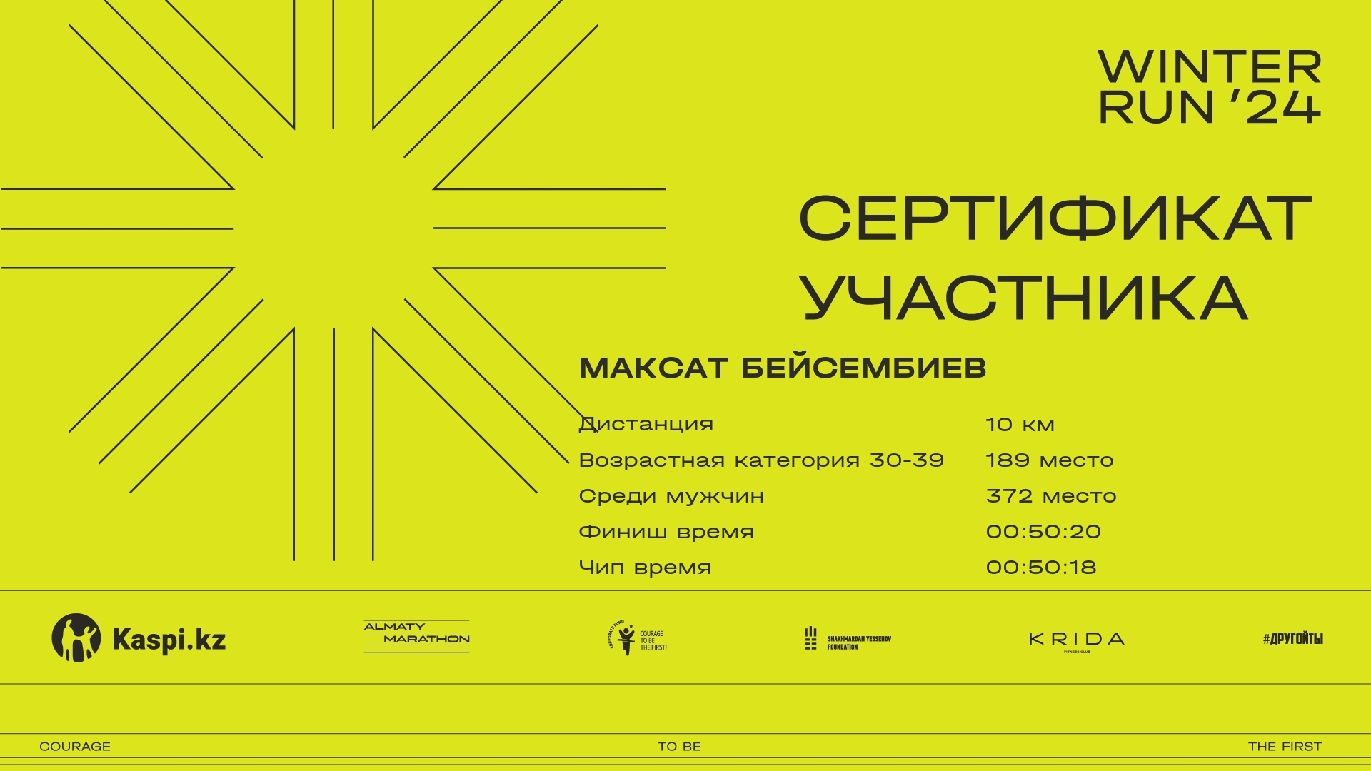 | 429 | Асылбек Адиетов | ![]() | Алматы | 1186 | 00:07:23 | 00:26:05 | 00:42:36 | 00:50:21 | 00:49:40 | Скачать |