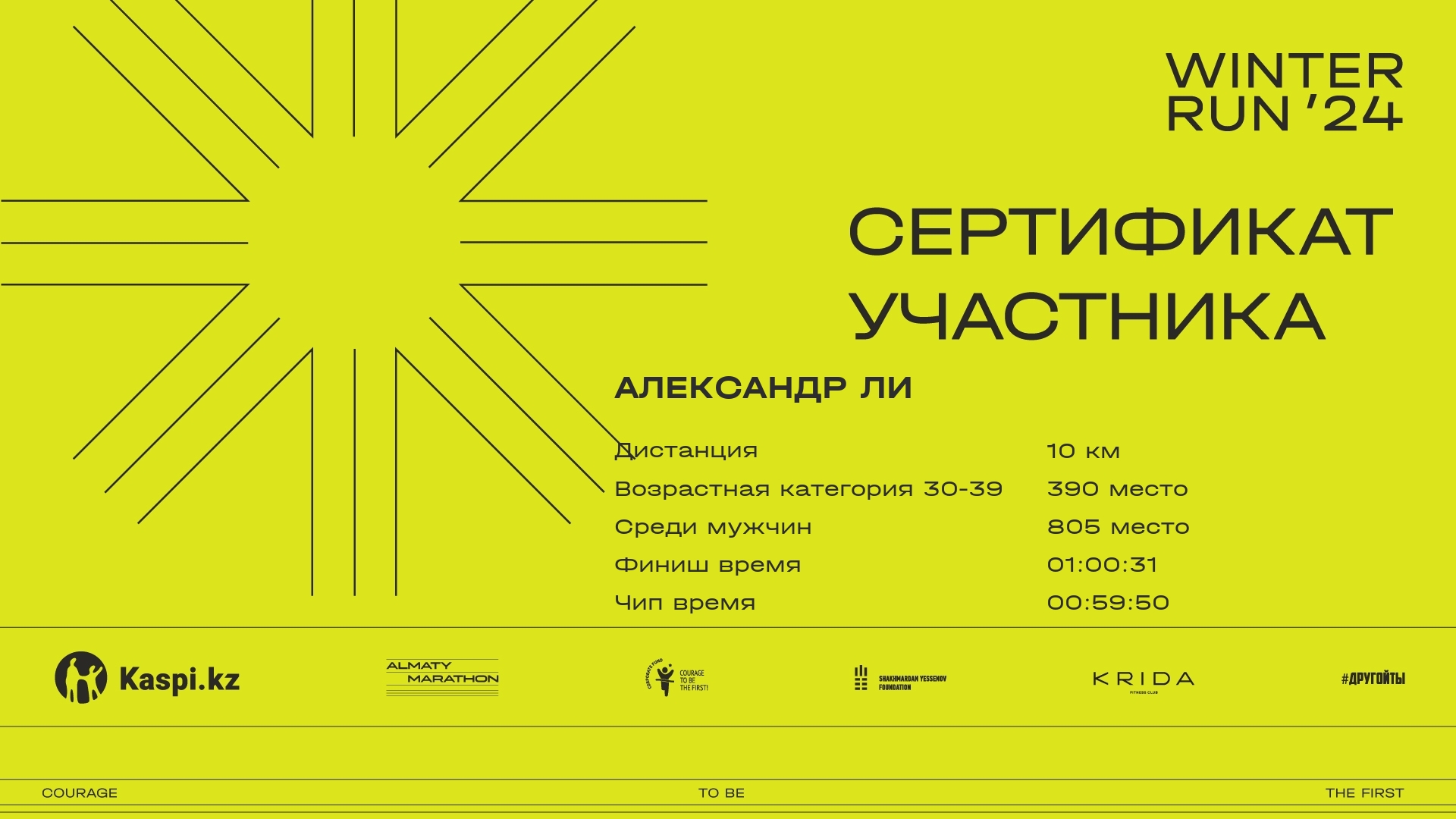 | 1250 | Александр Серков | ![]() | Алматы | 1476 | 00:11:34 | 00:35:35 | 00:56:52 | 01:06:27 | 01:05:06 | Скачать |