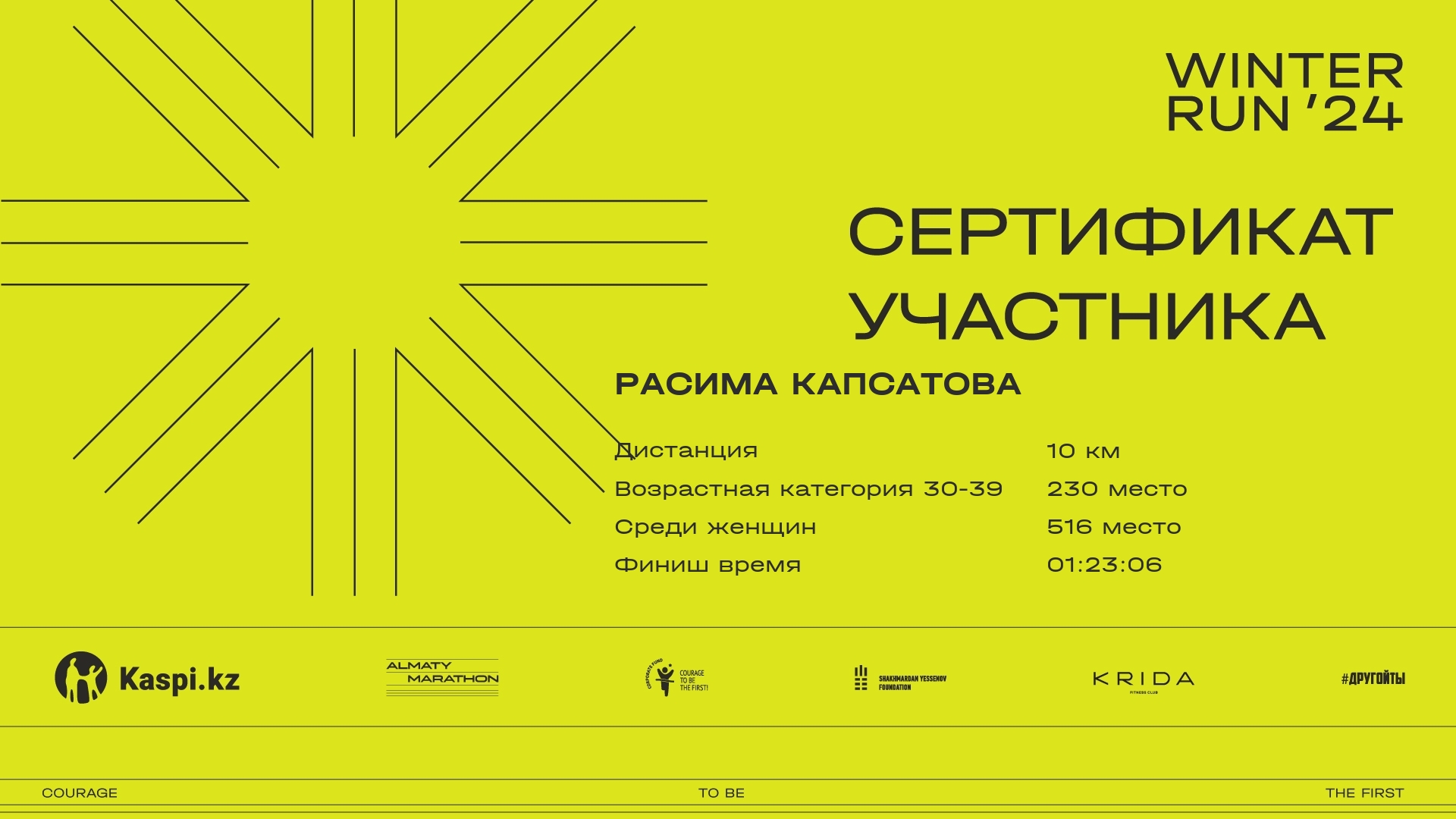 | 1730 | Ляззат Насирова | ![]() | Алматы | 1923 | 00:13:07 | 00:43:50 | 01:11:46 | 01:25:42 | 01:24:22 | Скачать |