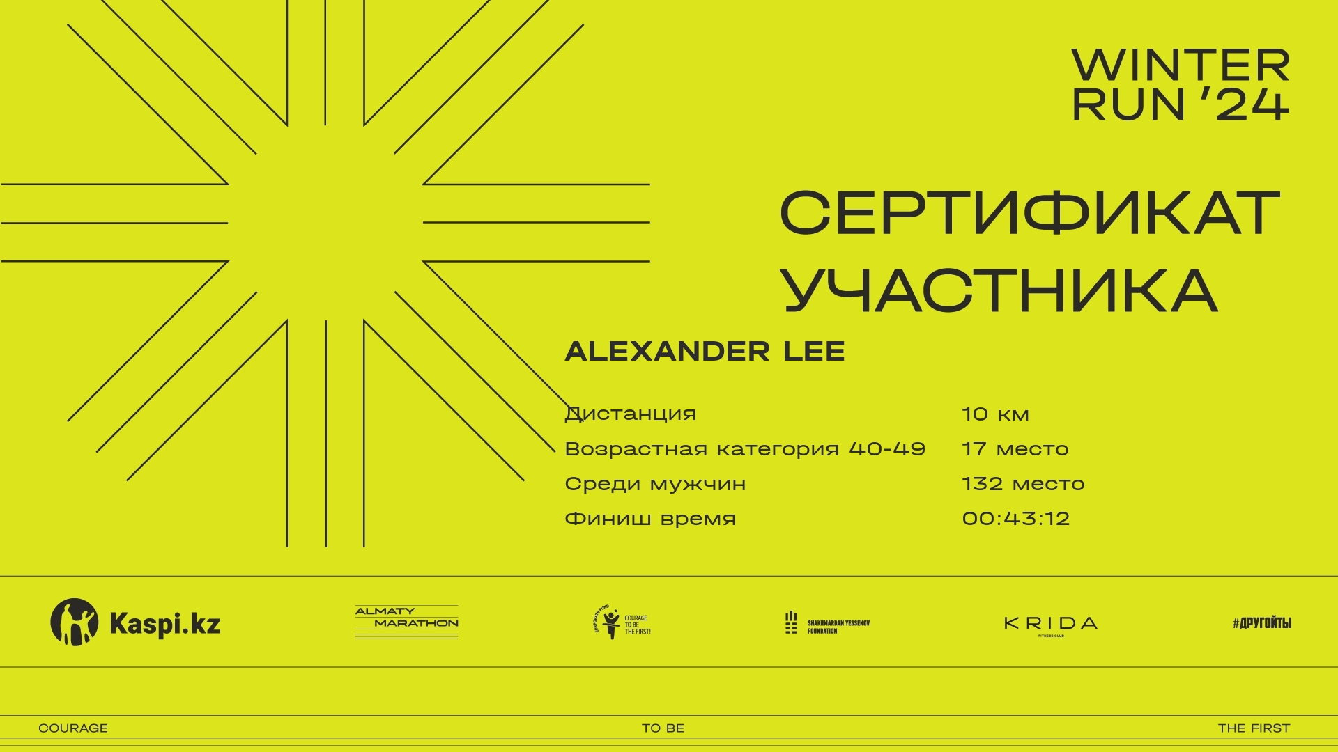 | 145 | Едил Сагатбеков | ![]() | Алматы | 840 | 00:06:07 | 00:22:31 | 00:36:32 | 00:43:22 | 00:43:19 | Скачать |