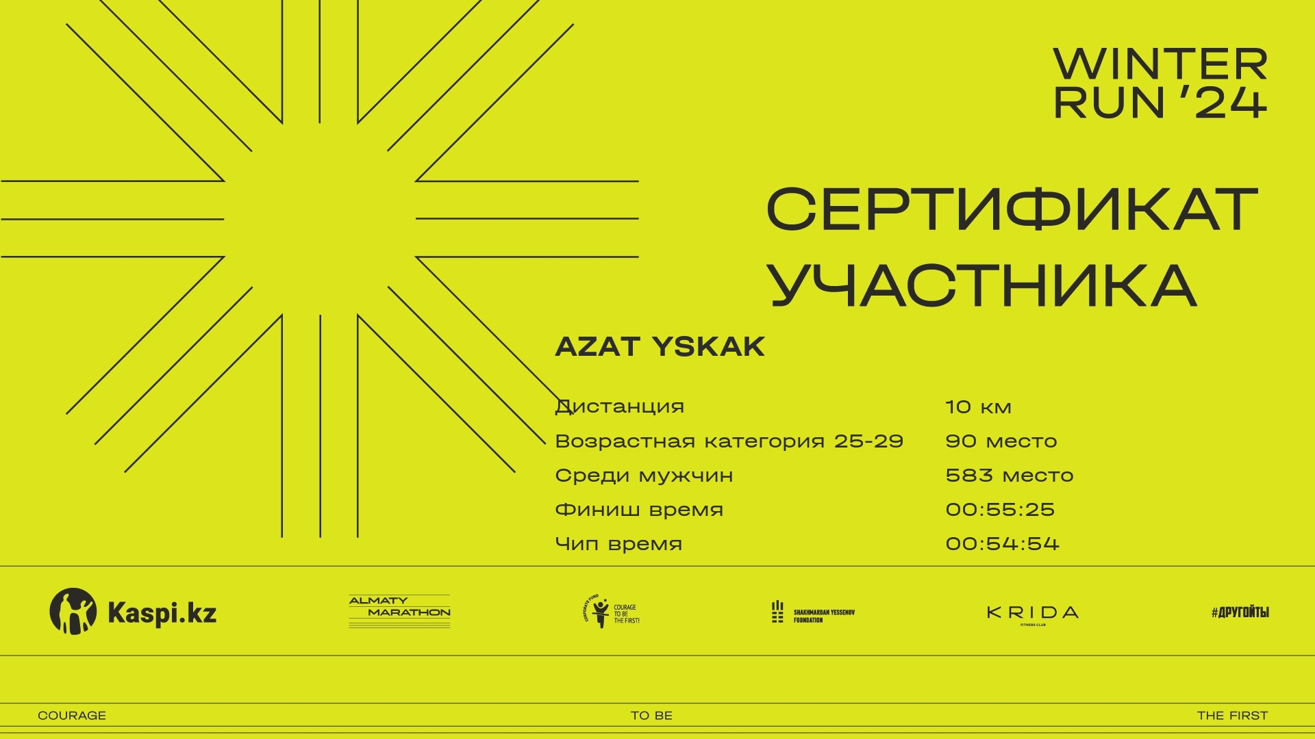 | 1017 | Bakhyt Zharkynbek | ![]() | Almaty | 313 | 00:10:26 | 00:32:25 | 00:51:48 | 01:00:56 | 00:59:50 | Скачать |