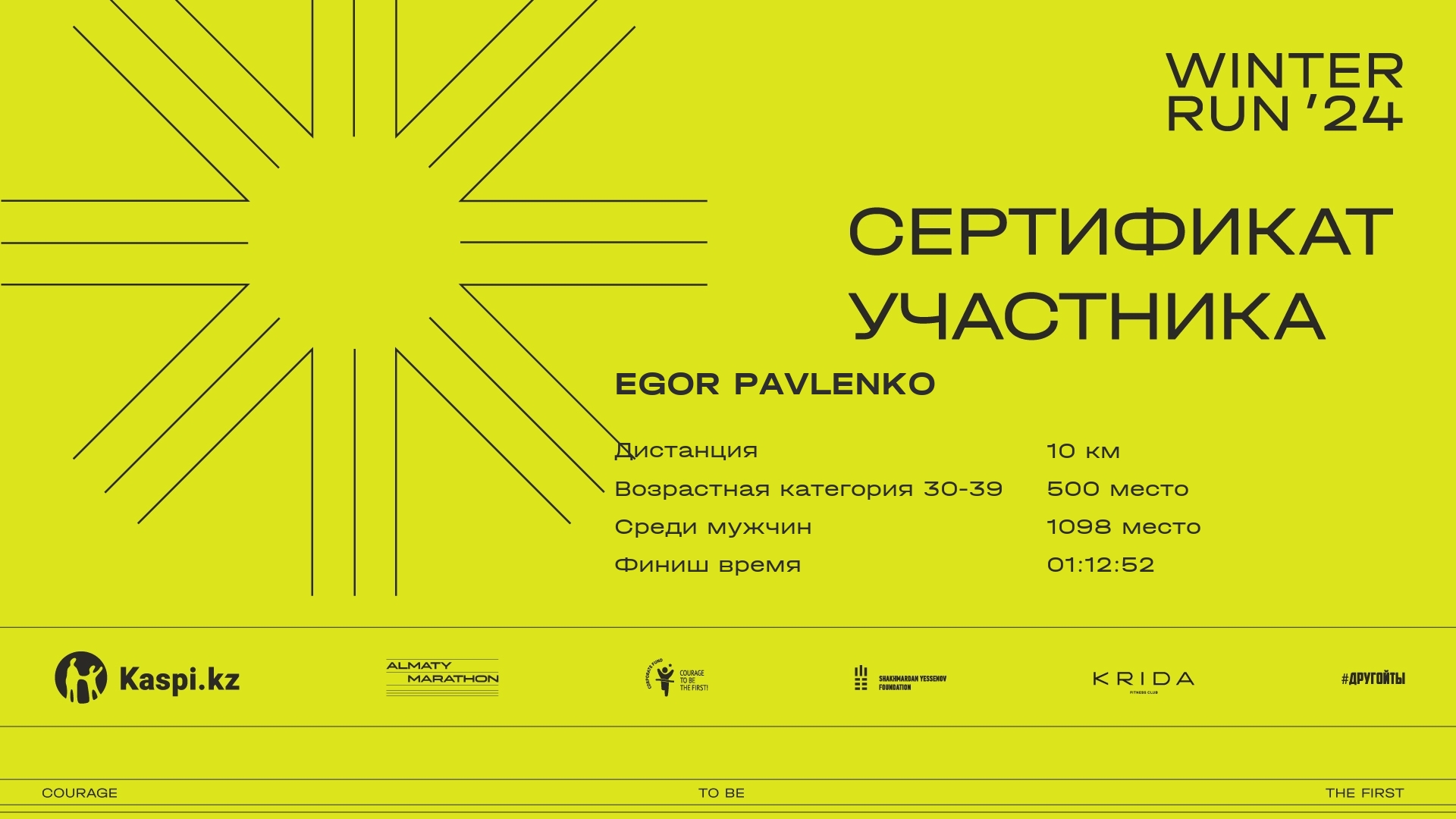 | 168 | Erasyl Tagaev | ![]() | Almaty | 680 | 00:06:10 | 00:22:19 | 00:36:48 | 00:44:03 | 00:43:48 | Скачать |
