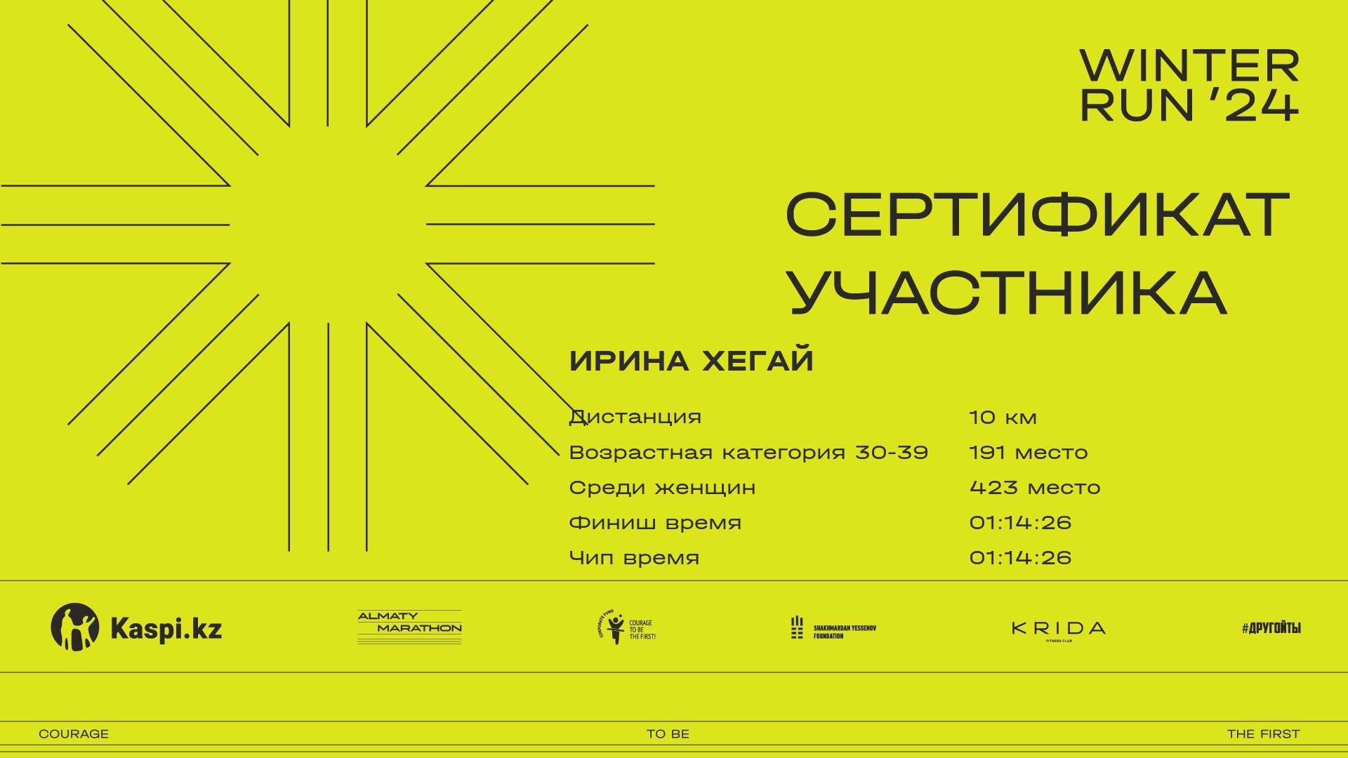 | 68 | Даян Сансызбаев | ![]() | Шымкент | 1453 | 00:05:52 | 00:20:18 | 00:33:37 | 00:39:45 | 00:39:42 | Скачать |
