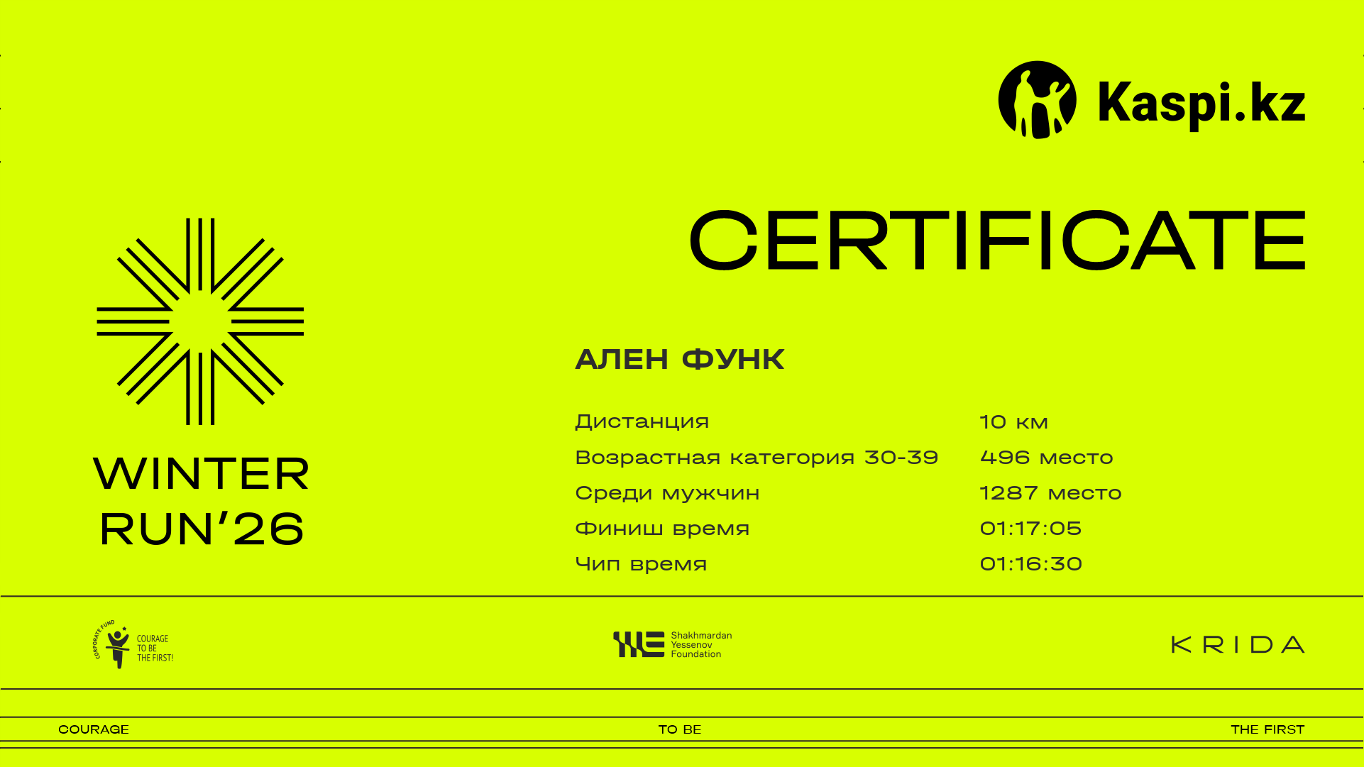 | 362 | Нурсултан Боранбаев | ![]() | Алматы | 987 | 00:07:38.87 | 00:24:22.44 | 00:40:35.11 | 00:47:46.04 | 00:47:17.29 | Скачать |
