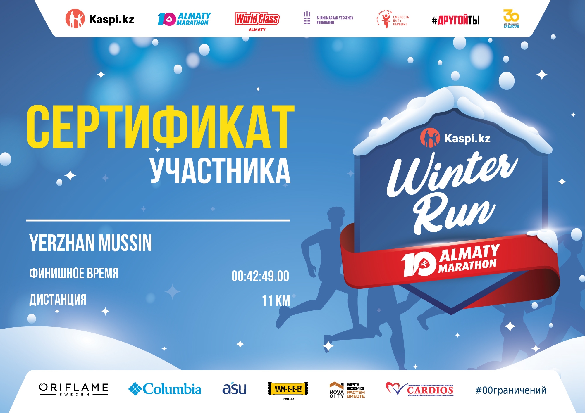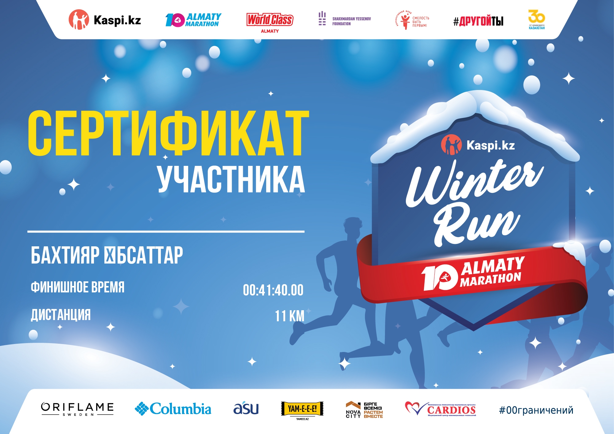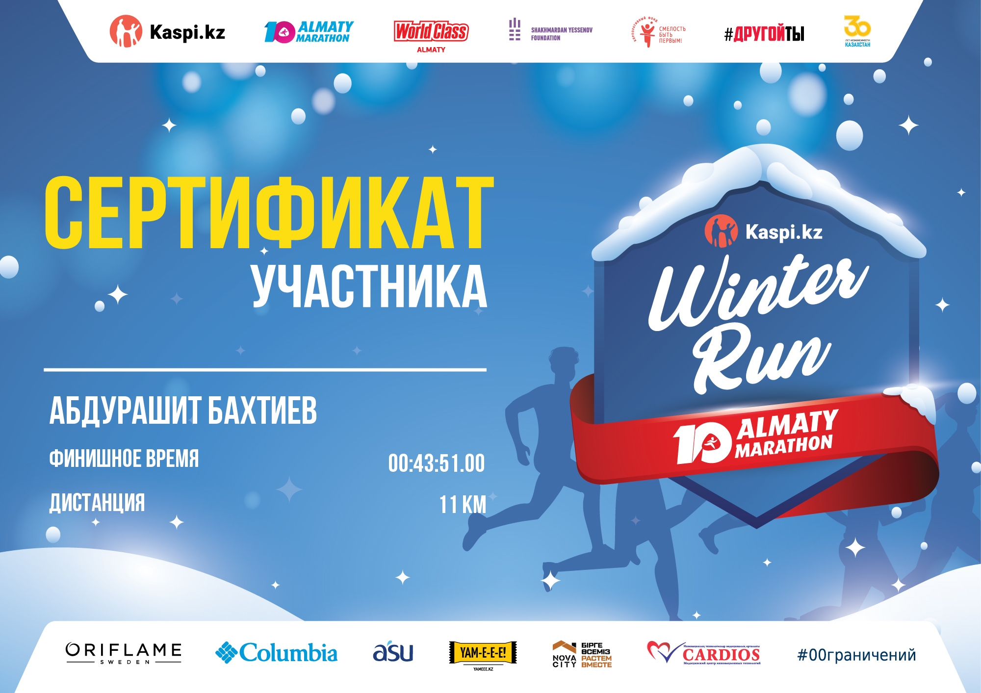 | 22 | Кобей Самен | ![]() | Алматы | 401 | 00:43:02 | 00:43:02 |