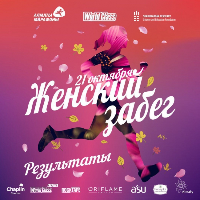 The participants overcame the distance of 10 km, having run 2 large circles across the park. The winners, who took the first places in their age categories, are: 16-30 years old – Riana Zeinalova, 31-44 – Yekaterina Shatnaya, above 45 years old – Lyubov Asanova. The participants winning from the 1 to 3rd places got the prize medals and presents from the partners, and at the finish all participants without exceptions were handed in with the exclusive race medals and roses by the honorary participant and biathlete Yelena Khrustalyova, the Olympic Medalist and the master of sport of RK, the honorary participant of the Female Race “Almaty Marathon”.