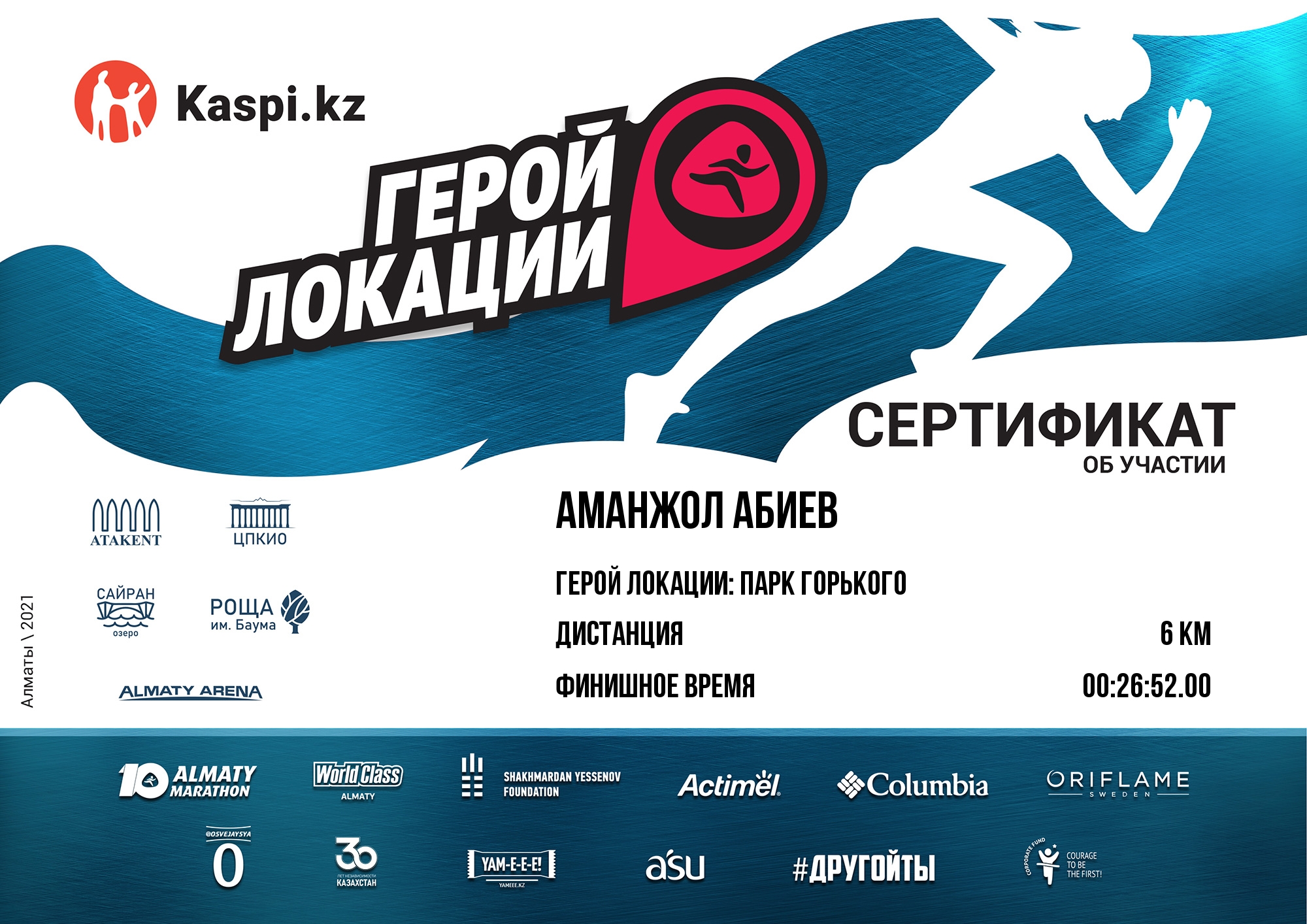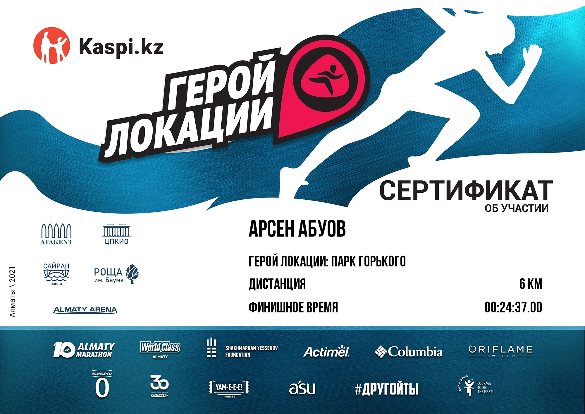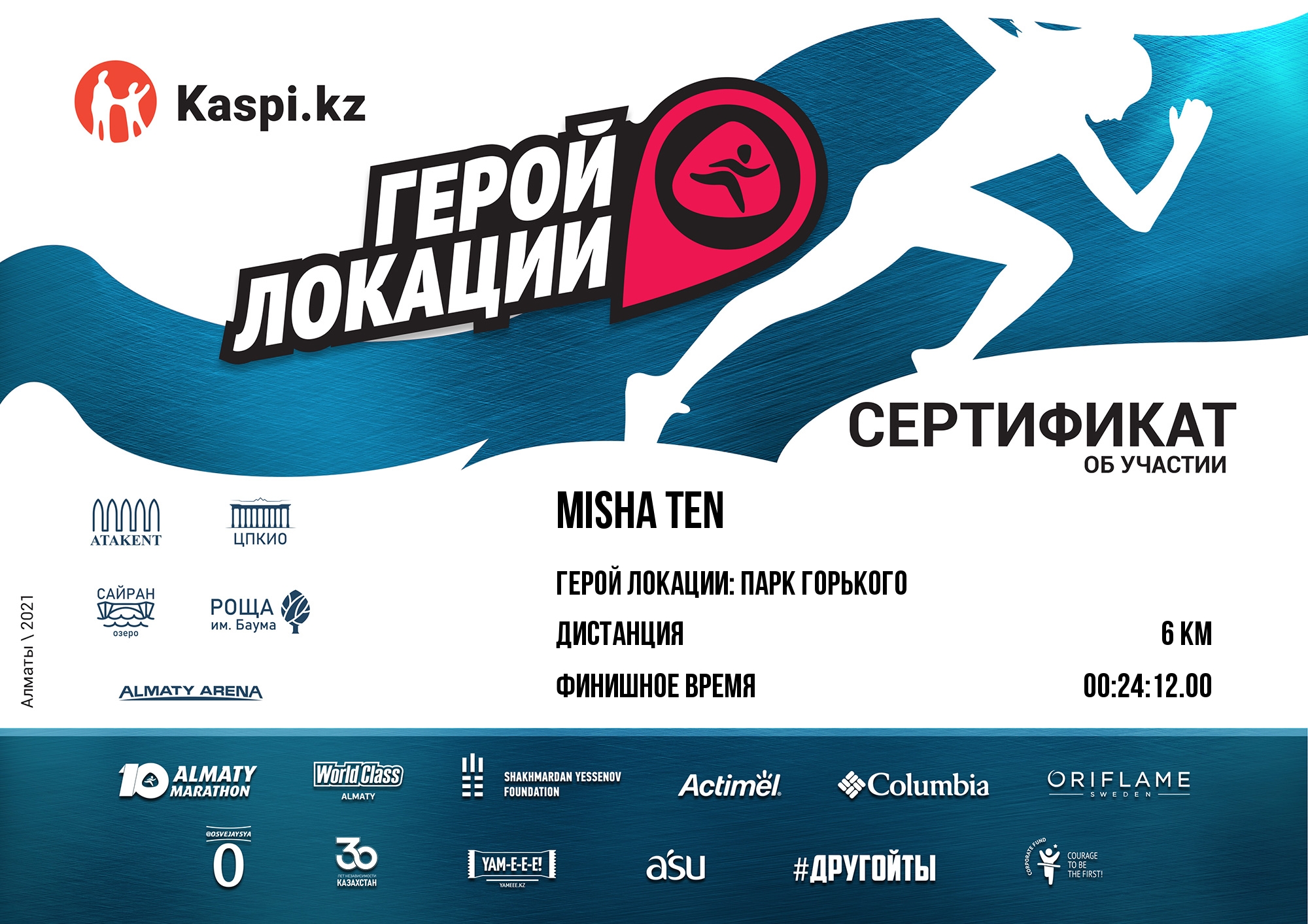 | 12 | Арсен Абуов | ![]() | Алматы | 23 | 00:24:37 | 00:24:37 |