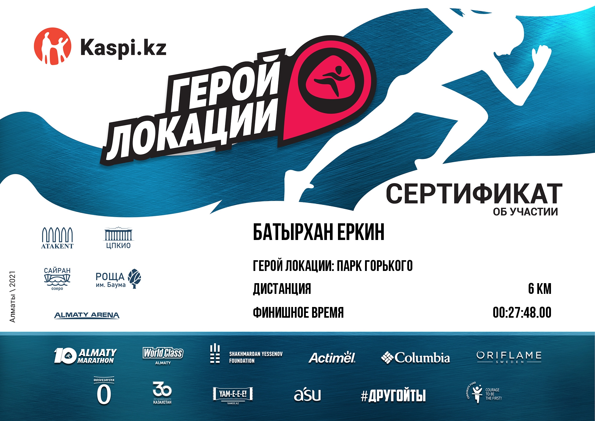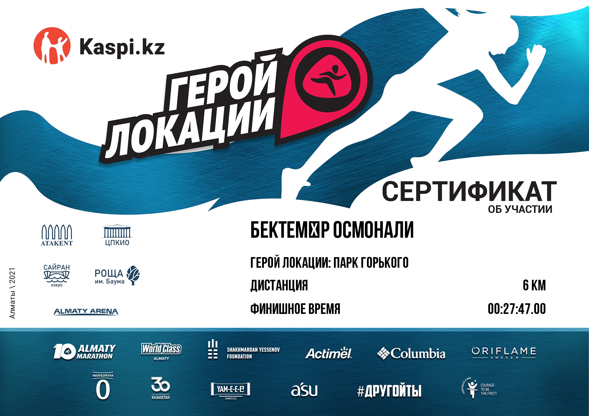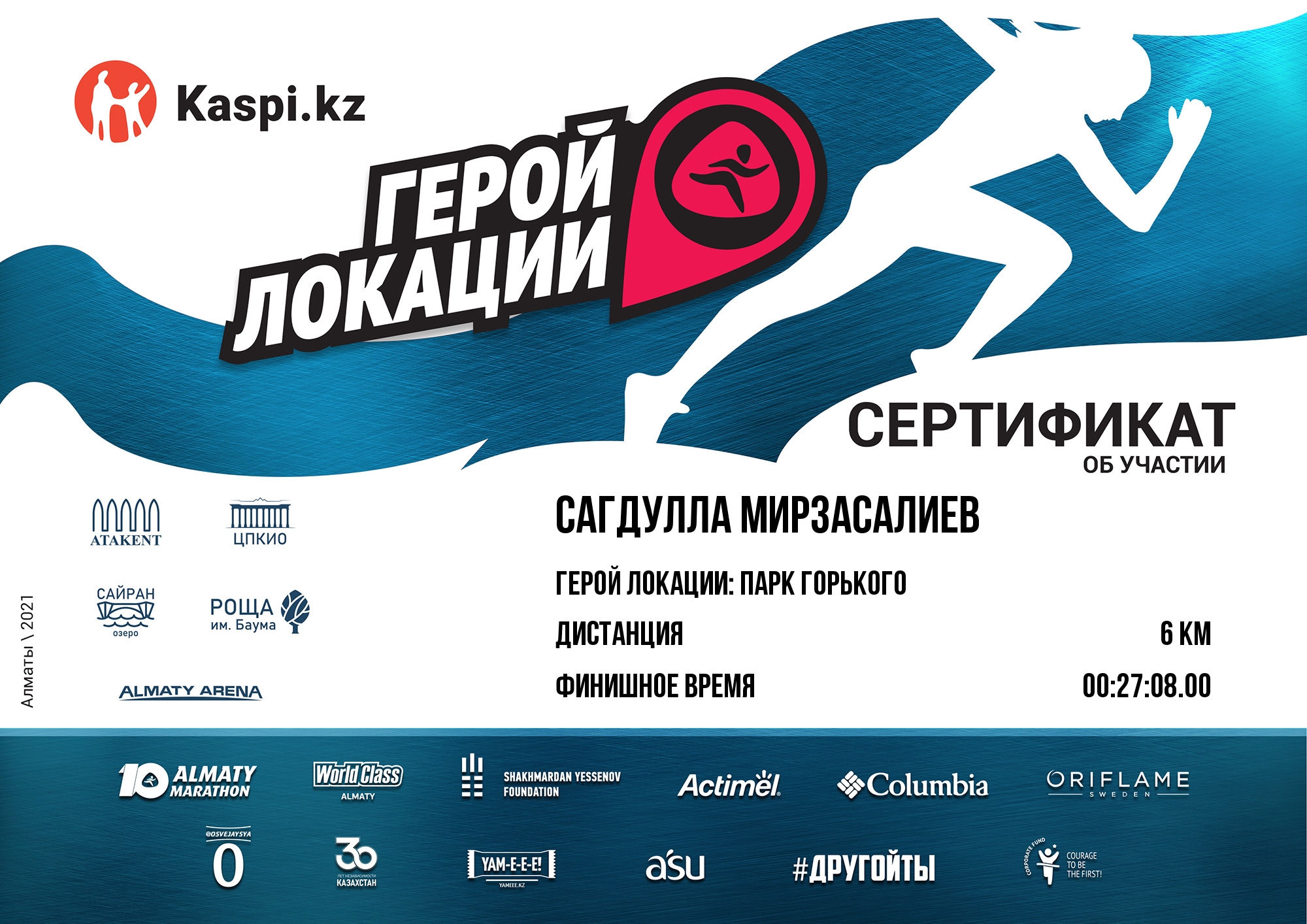 | 12 | Арсен Абуов | ![]() | Алматы | 23 | 00:24:37 | 00:24:37 |