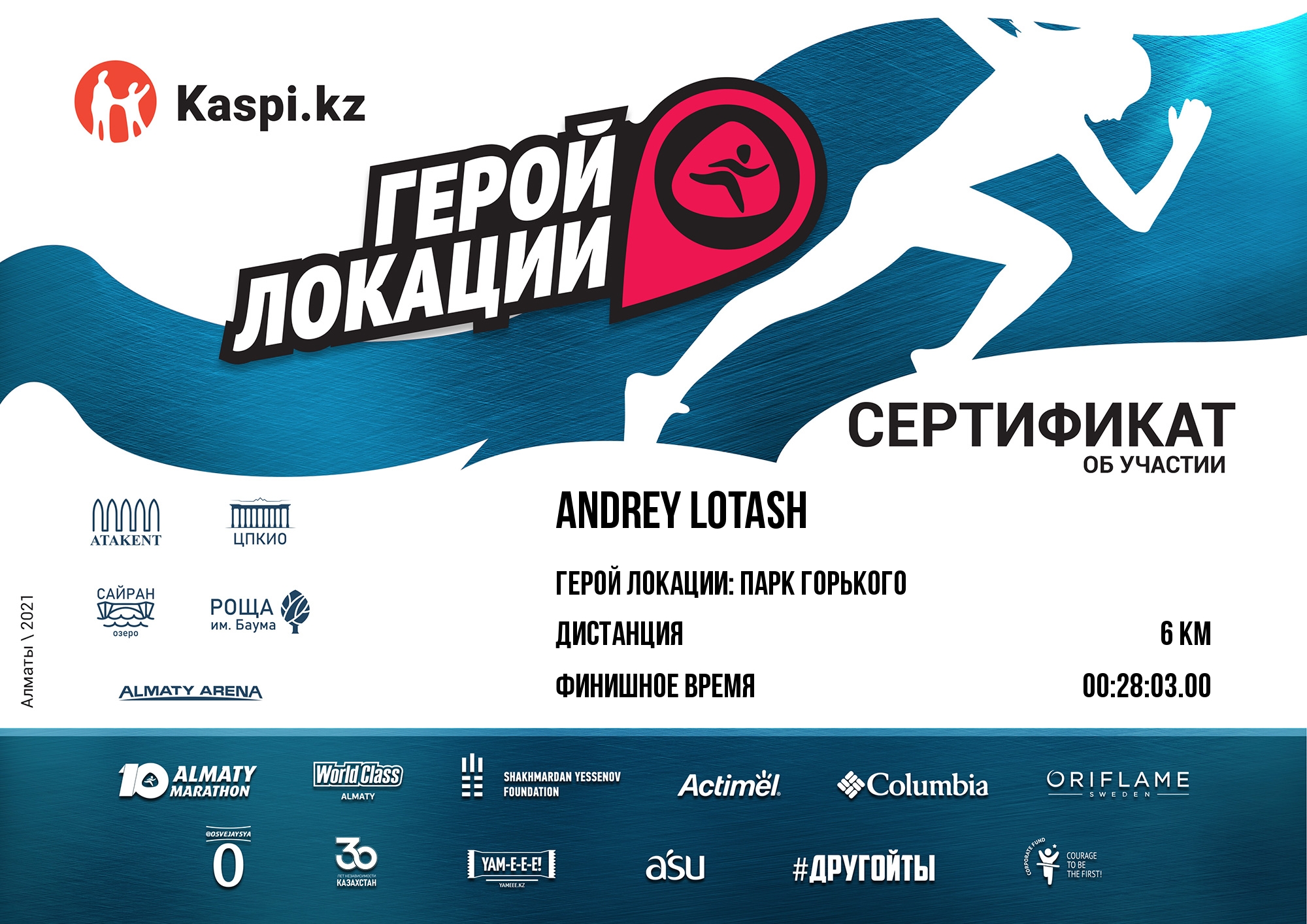| 28 | Евгений Новиченко | ![]() | Алматы | 45 | 00:27:04 | 00:27:04 |