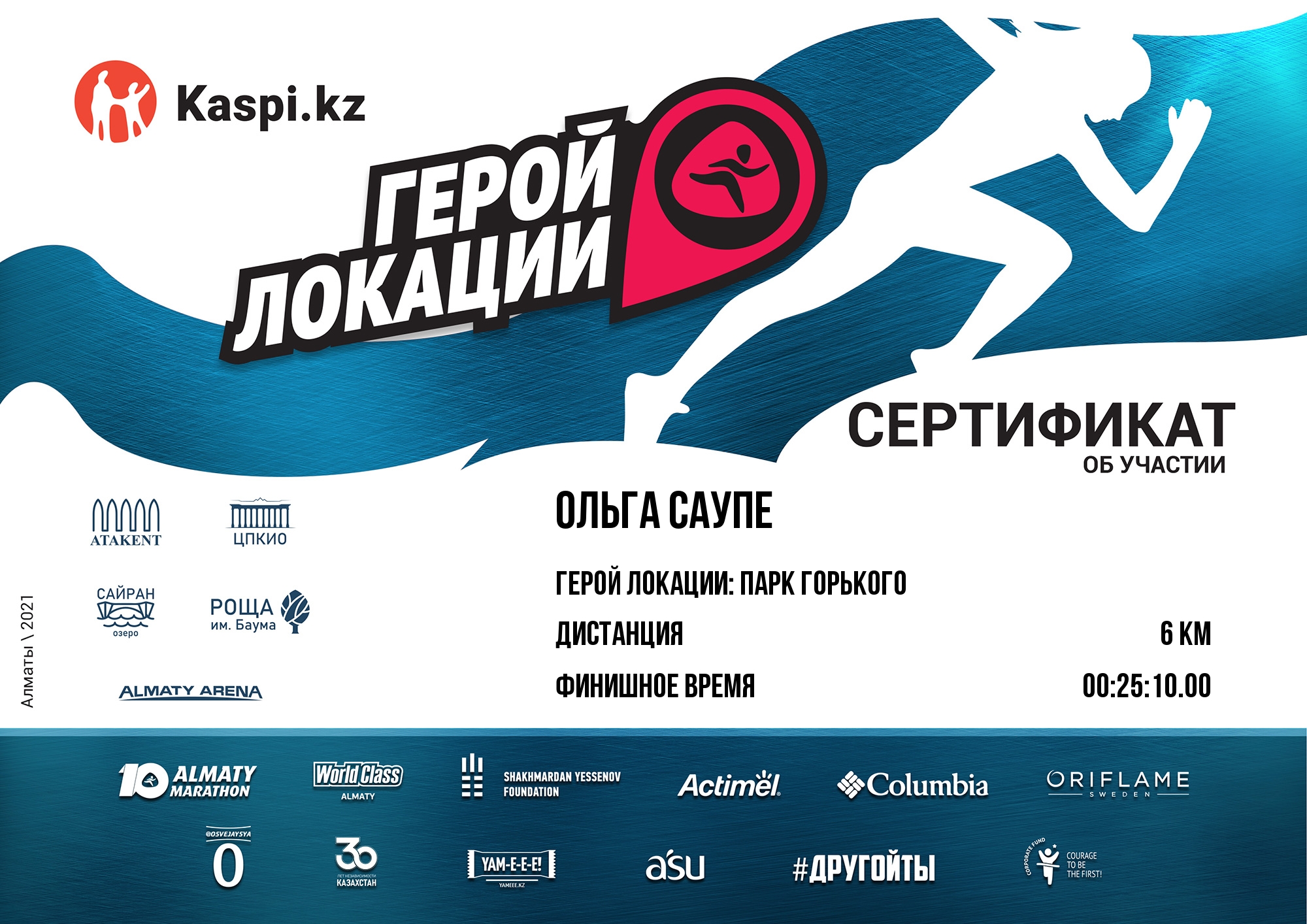 | 14 | Ольга Саупе | ![]() | Алматы | 27 | 00:25:10 | 00:25:10 |