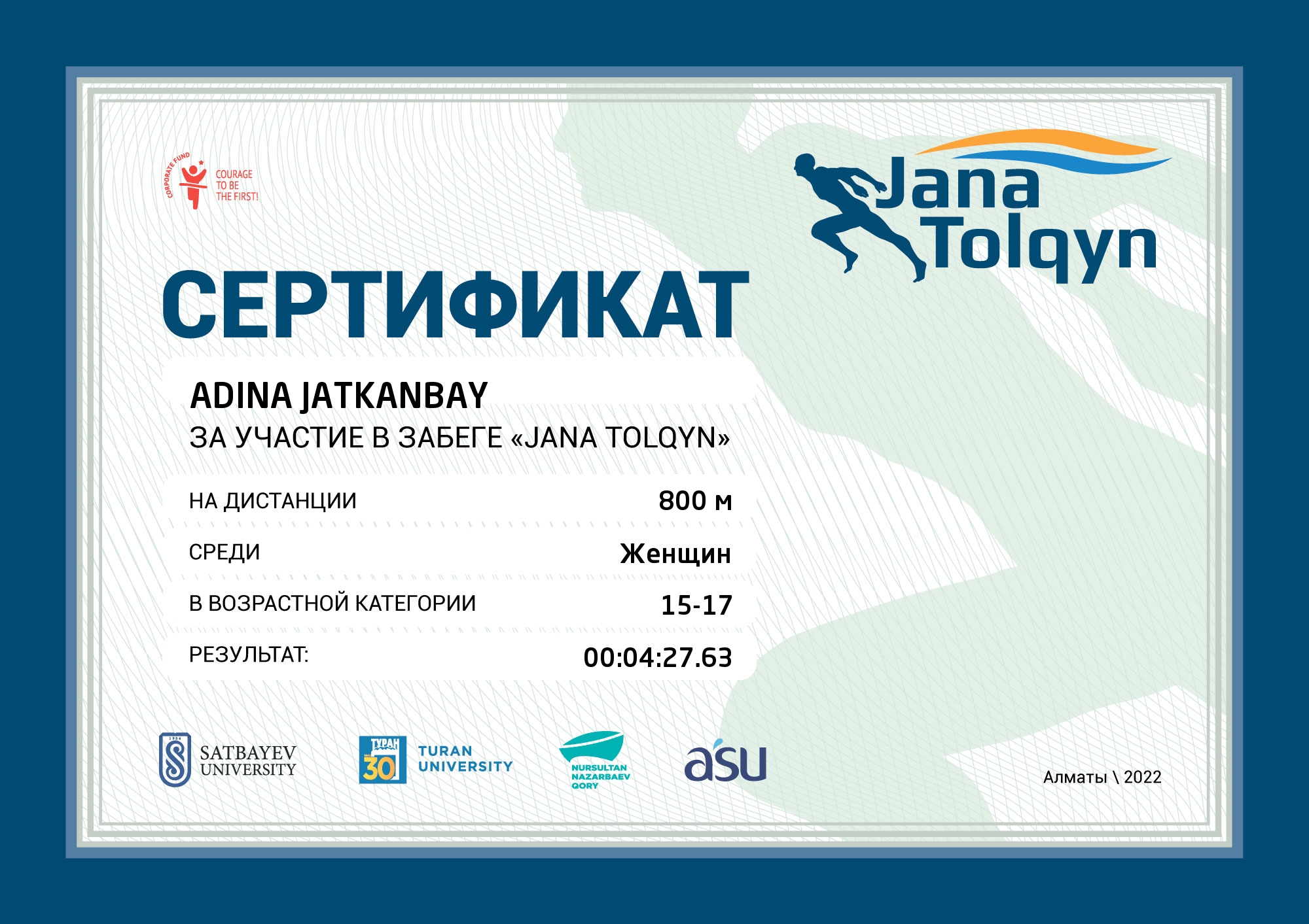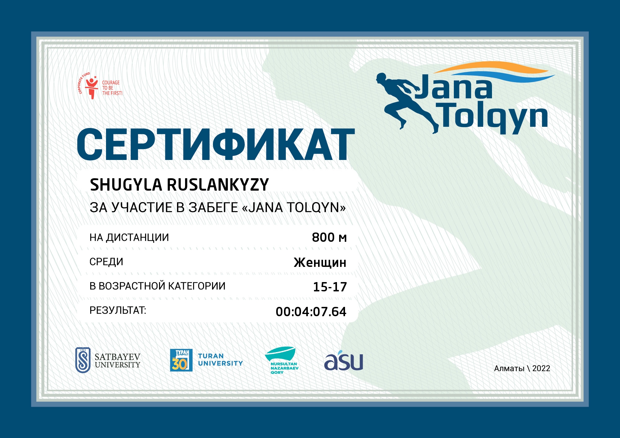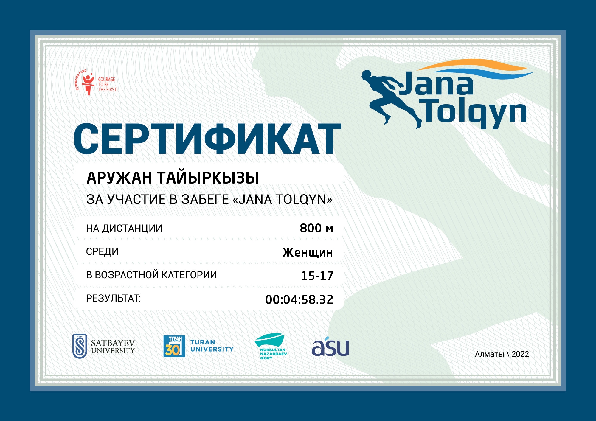 | 22 | Толғанай Айтын | ![]() | Алматы | 161 | 00:03:06.97 | 00:03:06.97 |