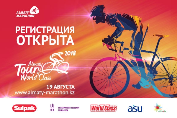 Кәсіпқой спортшылар мен жанкүйерлер дүниежүзілік Тур де Франс жарысын тамашалап жүргенде, Алматы марафоны бір айдан кейін, яғни 19 тамызда Алматыда өтетін «Tour of World Class Almaty» мерейтойлық бесінші веложарысына тіркеудің ашылғанын жариялайды. Сөреге мыңдаған велоәуесқой жиналмақ. Спортшылар 14 км, 34 км және 57 км қашықтықтың біреуін еңсереді.