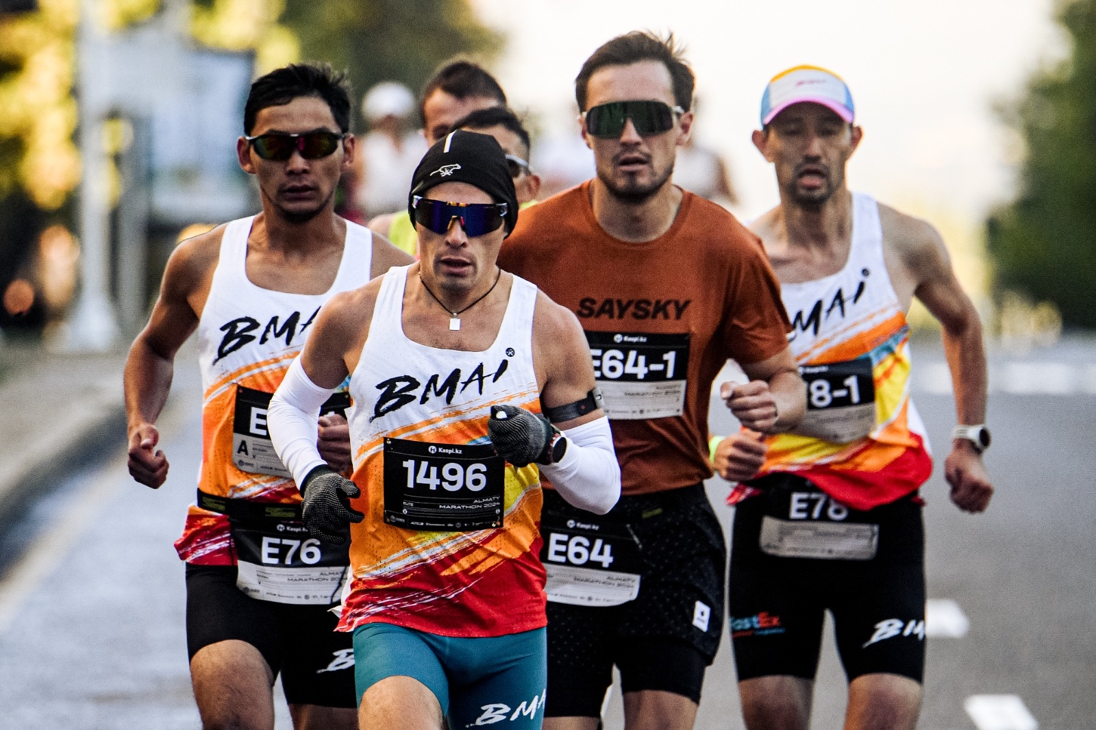 Almaty Marathon жеңімпазы 02:19:44 нәтижесімен жолдың жаңа рекордын орнатқан Қырғызстаннан Илья Тяпкин болды. Ол 2022 жылы 02:21:27 уақытын көрсеткен алдыңғы рекордшы, қазақстандық Шедрак Кончтан озып кетті. Екінші және үшінші орындарды тиісінше 02:21:47 нәтижесімен Бегзод Бойматов (Қазақстан) және 02:23:33 нәтижесімен Жандос Нарау (Монғолия) иеленді.