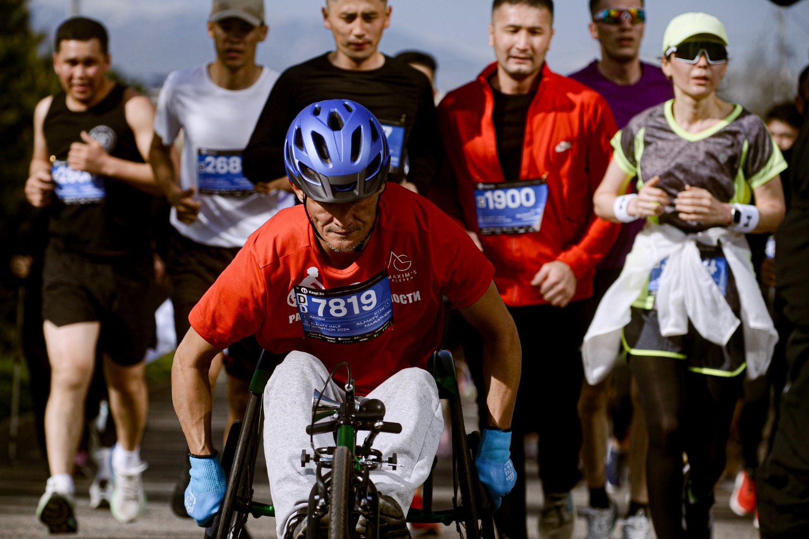 Бок о бок со всеми спортсменами на специальных гоночных колясках участники команды «Одиннадцать друзей Максима» покоряли 21,1 км живописной трассы. Впервые в истории организаторы полумарафона наградили этих атлетов в абсолютном зачете. Это событие стало символичным и полностью отразило новый логотип Almaty Marathon. Вдохновленный эстетикой беговых дорожек стадионов, он состоит из динамичных линий, символизирующих многообразие скоростей, дистанций и ритмов бега.