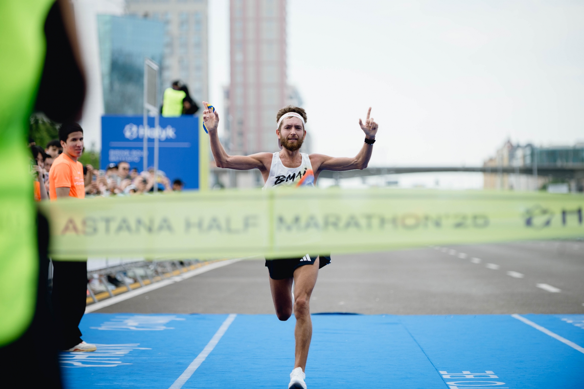 Финиш у монумента «Қазақ Елі». Здесь — счастливые участники, на шее каждого красуется уникальная медаль. На часах нет и 10 утра, а бегуны поставили свои рекорды и заняли призовые места. Лучший результат среди мужчин на полумарафоне показал украинец Виталий Шафар, выбежав из 01:05:23. Следом финишировали узбекистанцы Нодирбек Муталипов (01:06:18) и Бекзод Бойматов (01:06:42).
