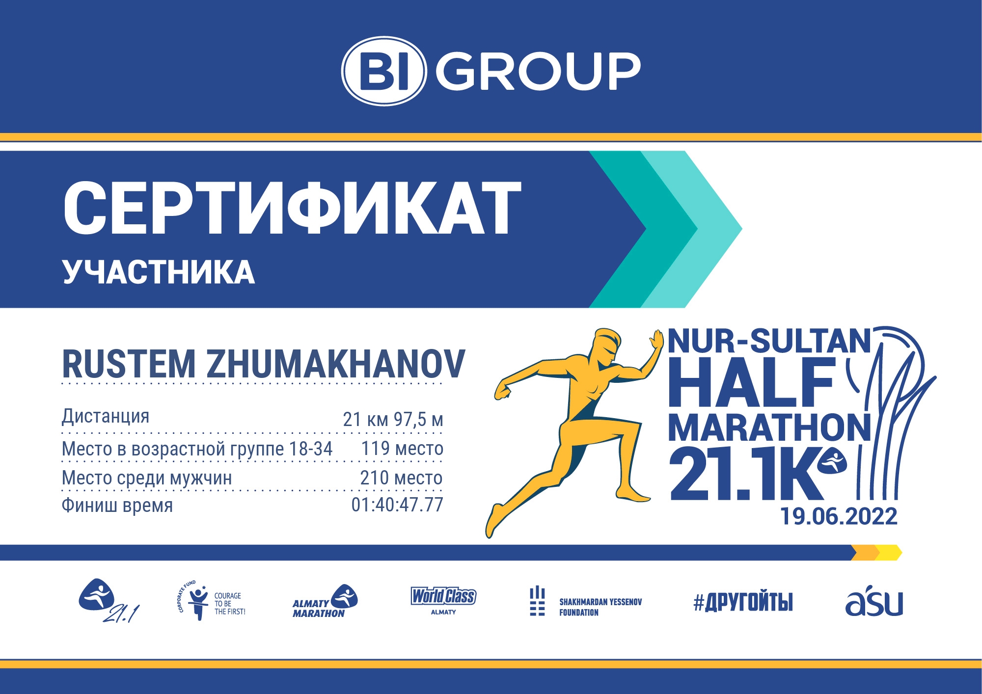 | 235 | Абылай Султанмурат | ![]() | Шымкент | 1099 | 00:29:13.58 | 01:01:47.31 | 01:22:06.24 | 01:41:19.57 | 01:41:01.18 |
