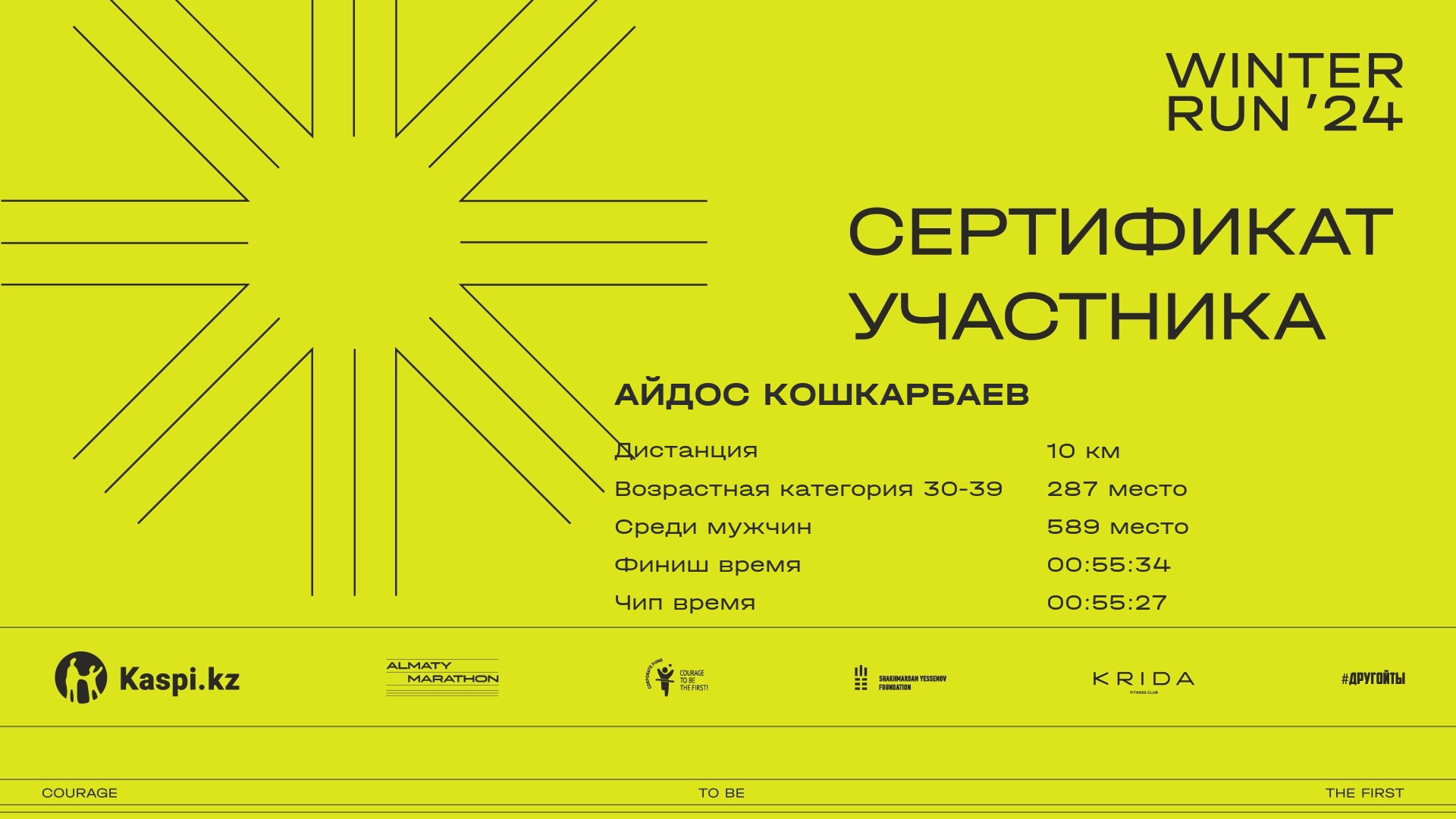 | 1006 | Арман Шарипов | ![]() | Алматы | 1975 | 00:09:13 | 00:31:09 | 00:50:59 | 01:00:28 | 01:00:01 | Скачать |